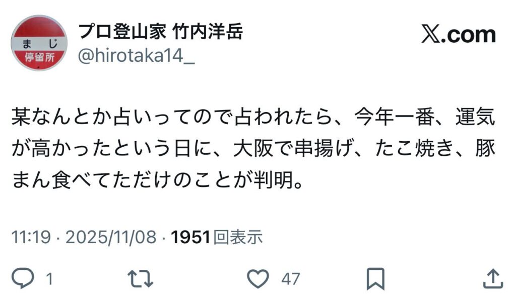 今年一番の運気が高い日に食べた串揚げ、たこ焼き、豚まんはさぞかしおいしかったことでしょうね。